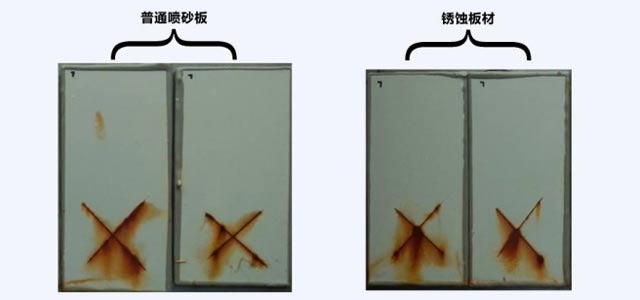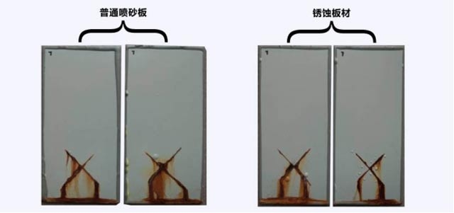 環(huán)氧帶銹防銹涂料耐鹽霧測試:1032小時,對銹蝕板材的防腐保護(hù)能力與經(jīng)過噴砂處理的防腐程度相同。